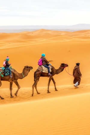 Sleeping at Merzouga's Sahara desert camp. Passing via Rissani, Erfoud, Midelt, and Fes