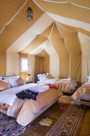 Camel riding in Merzouga's Sahara desert. Sleeping at Sahara desert camp near Merzouga