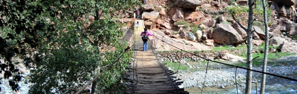 in the morning, your guide and driver will pick you up from your hotel in Marrakech. This excursion allows you the discover the high peaks of the Atlas mountains that surround the Ourika Valley. Visit the Berber villages on the way, and the beautiful Berber Museum. You can do an optional walk with a guide to beautiful waterfalls in Setti Fatma (easy climb), and enjoy a nice lunch in one of the many little restaurants along the river. If you come on Sundays, you see many local Marrakchi families coming to the Valley to enjoy their day off and relax during a pick nick.