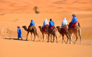 Some 60 Km southwest from erfoud , MERZOUGA has one attraction , The 150 m High Dunes of Erg chebbi, a vast pile of sand stretching into the Sahara. The Dunes are an offshoot of a much bigger area of Dunes across the border in Algeria but because of the relative accessibility of Erg chebbi they have often been used as a film set by Hollywood Dunes change color, from the palest cream to deep.